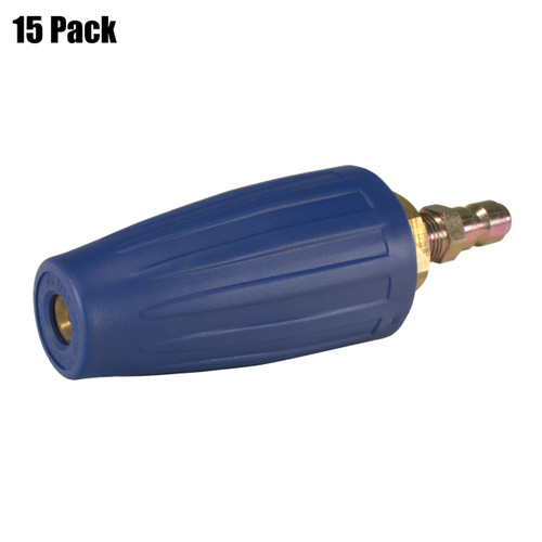 15 pack of Erie Tools Pressure Washer Rotating Turbo Nozzles with 1/4-inch Quick Connect plug and 4.0 Orifice rated for 5,000 PSI. The nozzle rotates a powerful 0° spray pattern in a circular motion to break down dirt and grime. The spinning water adds additional scrubbing ability to the cleaning process.