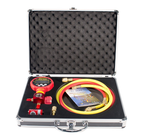 - Includes digital gauge, two (2) 4-foot charging hoses, and one (1) connection valve.