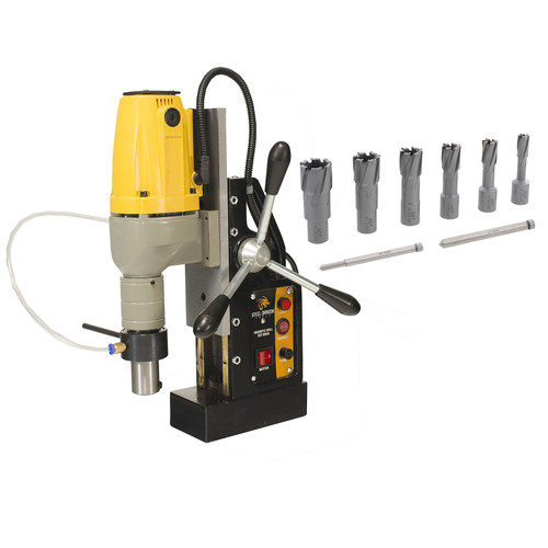 This package includes the Steel Dragon Tools® MD40 Magnetic Drill Press and the Steel Dragon Tools® 7-piece, 1-3/8-inch cut depth carbide-tipped annular cutter kit.